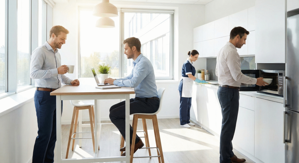 Sanitization of countertops, sinks, tables, and appliances to maintain a hygienic space for your employees.